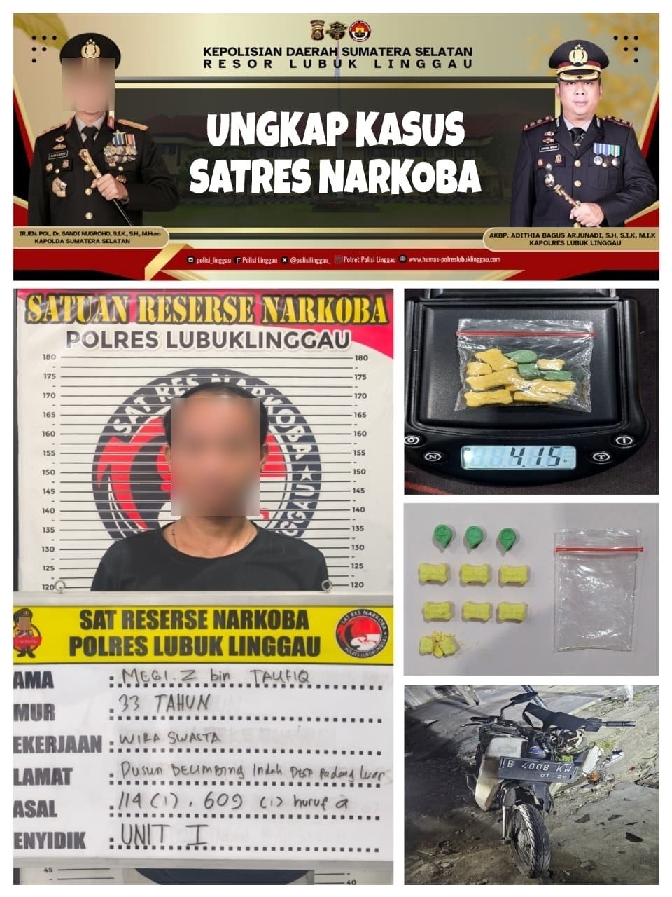 Pengungkapan ini bermula dari laporan masyarakat terkait aktivitas peredaran narkotika dengan sistem pemesanan COD. Menindaklanjuti informasi tersebut, Satresnarkoba Polres Lubuk Linggau melakukan penyelidikan dan pembuntutan terhadap pergerakan tersangka.