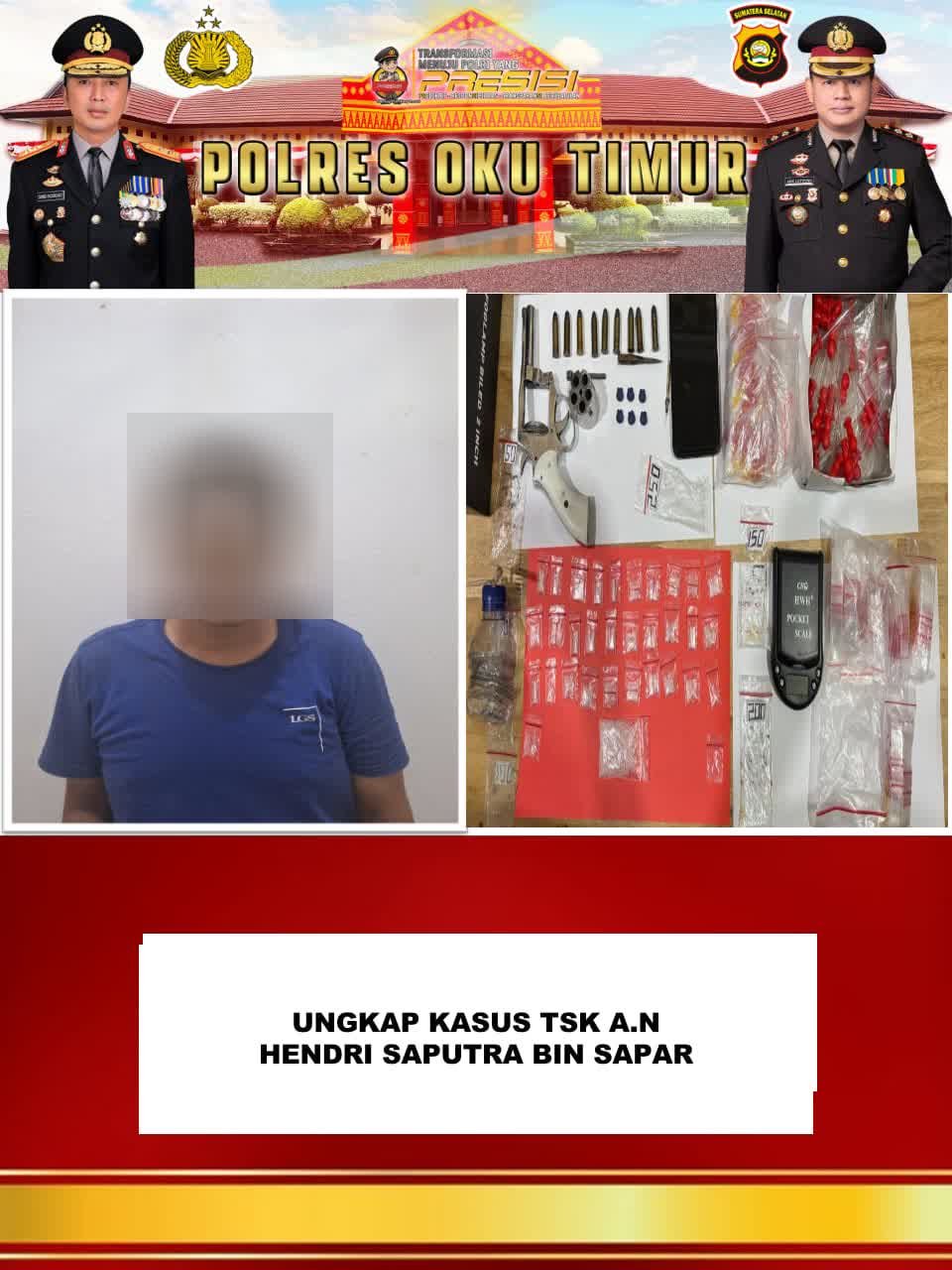 OKU TIMUR — Jajaran Polda Sumatera Selatan melalui Polres OKU Timur kembali menunjukkan komitmen tegas dalam pemberantasan kejahatan narkotika dengan mengungkap kasus berlapis yang melibatkan narkoba dan kepemilikan senjata api ilegal di Desa Campang Tiga Hulu, Kecamatan Cempaka, Senin (6/4/2026) siang.