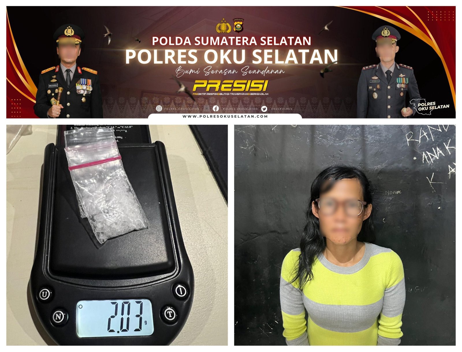 “Dua operasi dalam 30 jam, dua jenis narkotika berbeda, dua tersangka diamankan. Kami tidak memberi ruang kepada jaringan pengedar untuk bernapas lega. Penginapan maupun tempat hiburan tidak akan kami biarkan menjadi lokasi transaksi narkotika di OKU Selatan,” tegas Roby.