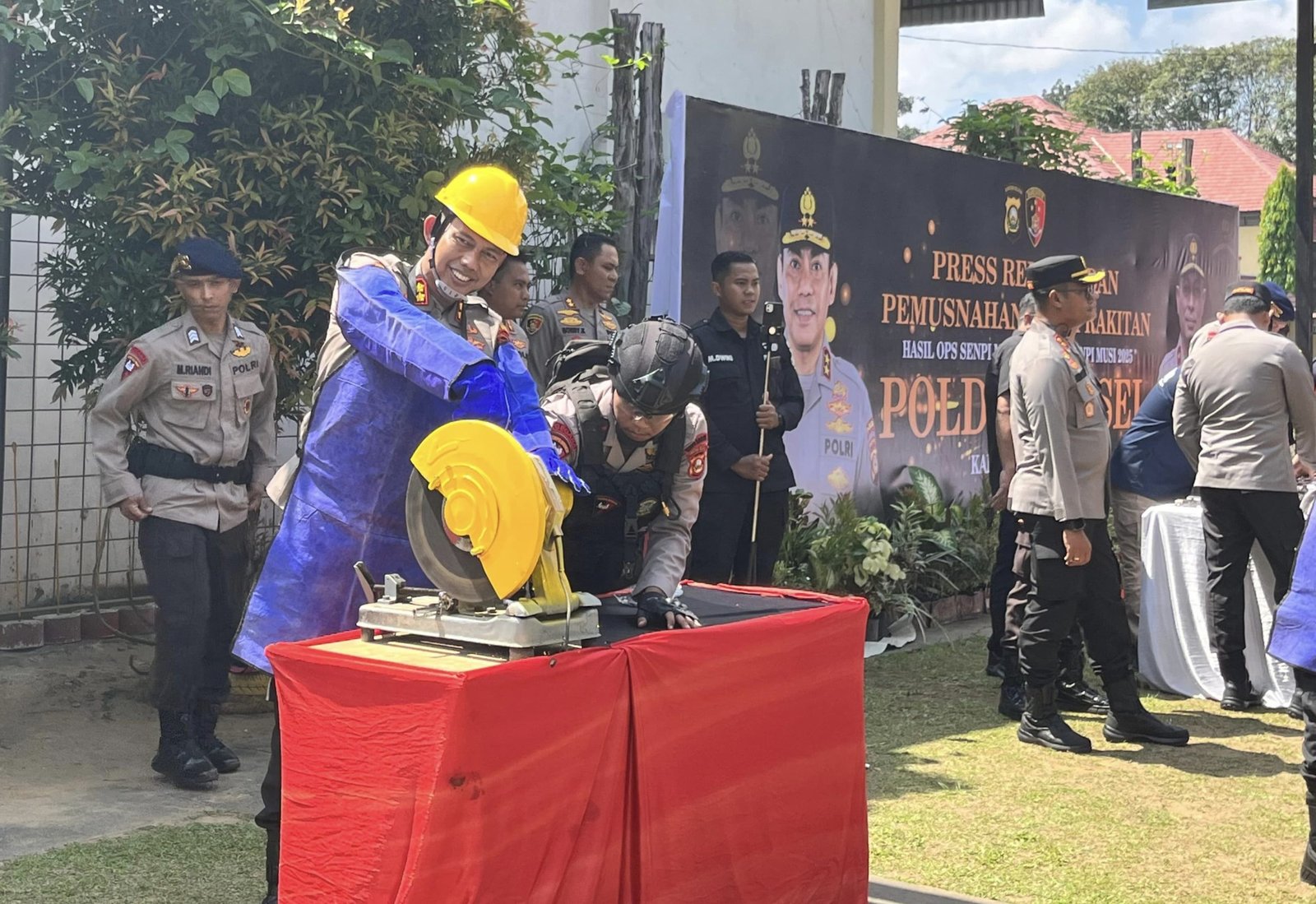 Kapolres Musi Rawas (Mura), AKBP Agung Adhitya Prananta SH, SIK, MH, menghadiri kegiatan Press Release dan pemusnahan barang bukti senjata api rakitan (senpira) hasil Operasi Senpi I Musi 2025, yang digelar Polda Sumatera Selatan, di Mako Brimob Polda Sumsel, Kamis (3/7/2025).