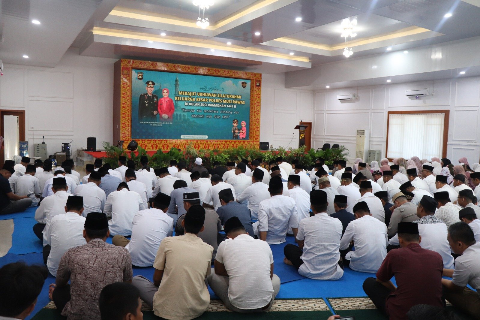 MUSI RAWAS-Dalam rangka meningkatkan keimanan dan mempererat silaturahmi di bulan suci Ramadan 1447 Hijriah, Kapolres Musi Rawas, AKBP Agung Adhitya Prananta, SH, SIK, MH, didampingi, Ketua Bhayangkari Cabang Musi Rawas, Ny Diana Agung, menggelar silaturahmi serta pemberian tali asih kepada para hafidz dan hafidzah yang dilanjutkan dengan buka puasa bersama serta khataman Al-Qur’an bersama keluarga besar Polres Musi Rawas, Selasa (17/3/2026).