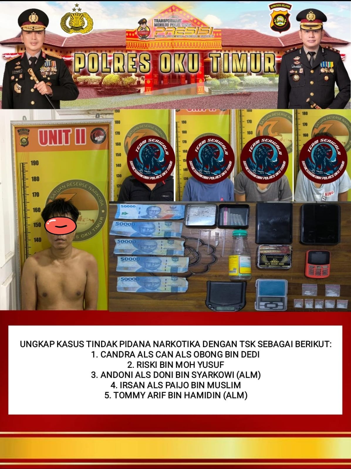 Lima Tersangka Kabur saat Digerebek Polisi di OKU Timur, Semua Berhasil Ditangkap — Jaringan Bandar hingga Pemakai Terungkap