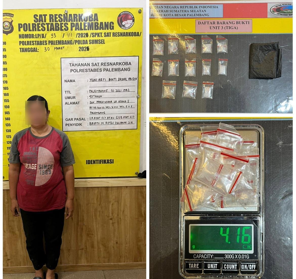 PALEMBANG — Satuan Reserse Narkoba Polrestabes Palembang kembali menunjukkan komitmennya dalam memberantas peredaran gelap narkotika dengan mengungkap kasus peredaran sabu di kawasan Seberang Ulu I, Kota Palembang, Senin (30/3/2026).