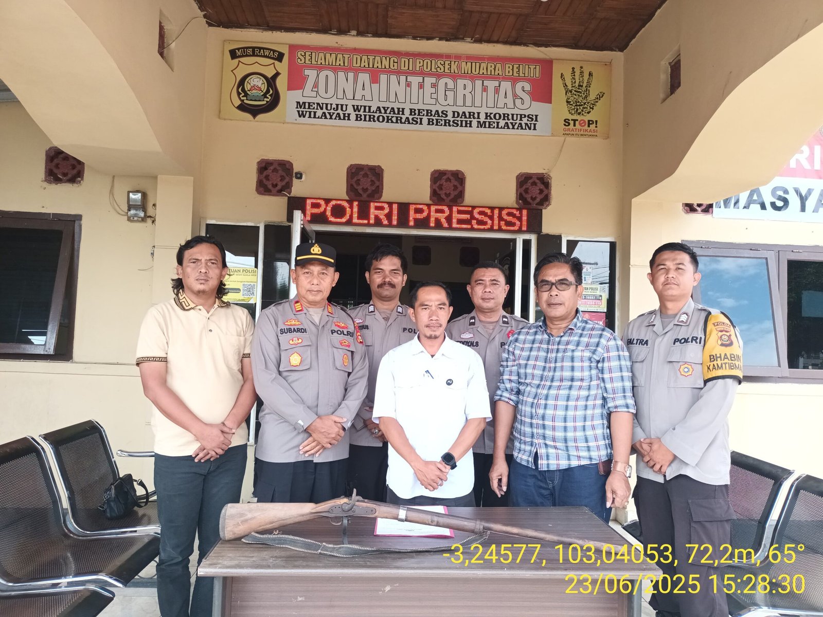 Dalam rangka mendukung keberhasilan Operasi Senpi Musi 2025, jajaran Polsek Muara Beliti kembali menerima penyerahan senjata api rakitan secara sukarela dari perangkat desa. Pada hari Senin, 23 Juni 2025 sekitar pukul 15.30 WIB, satu pucuk senjata api rakitan jenis kecepek laras panjang tanpa amunisi diserahkan oleh Sekretaris Desa (Sekdes) Suro, Kecamatan Muara Beliti, Kabupaten Musi Rawas, Edi Akbar Sanjani (35) kepada Kapolsek Muara Beliti, AKP Subardi, S.Sos.
