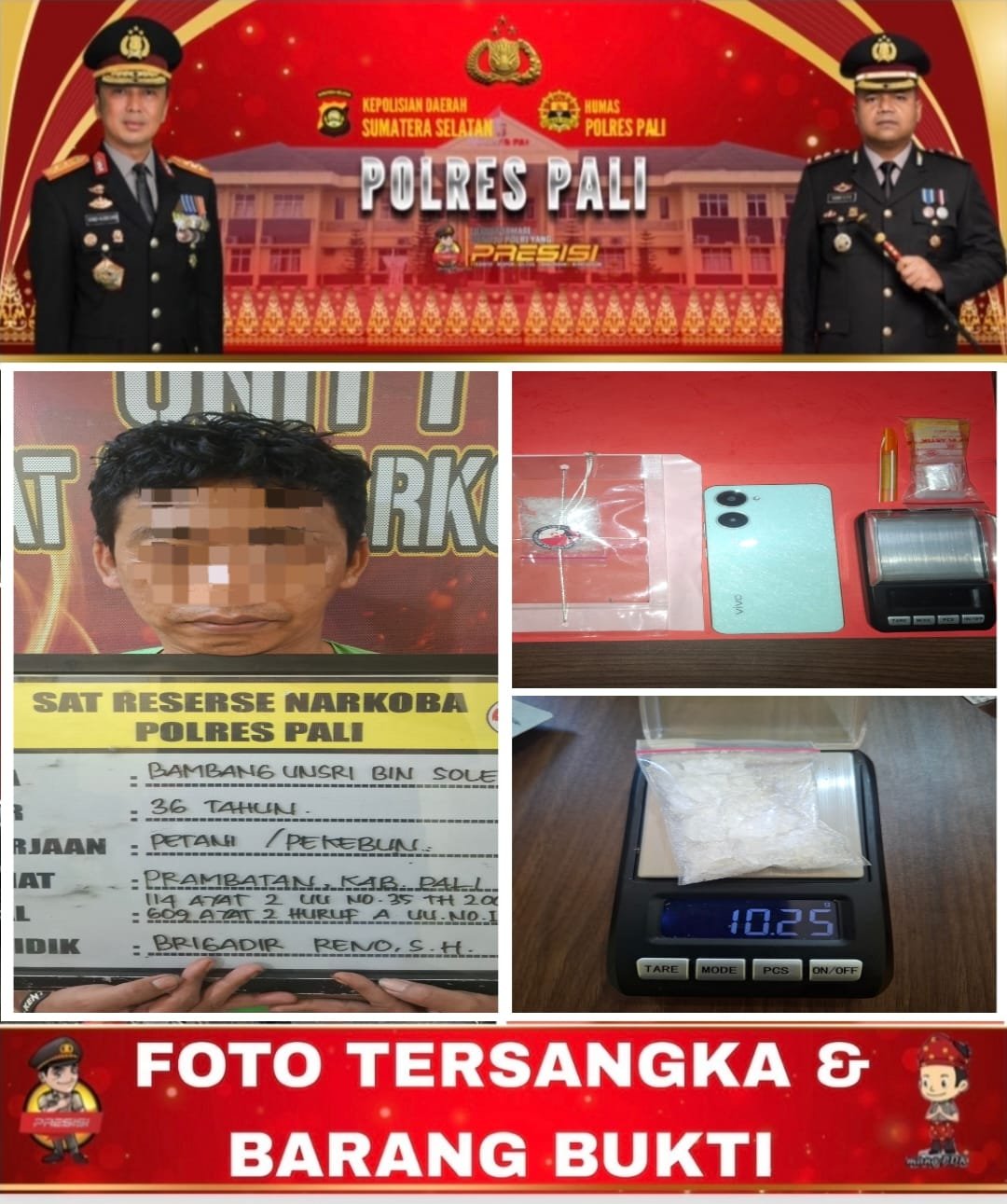 Sembunyi di Pondok Sawit, Diduga Pengedar Sabu di PALI Dibekuk — Timbangan Digital Perkuat Status