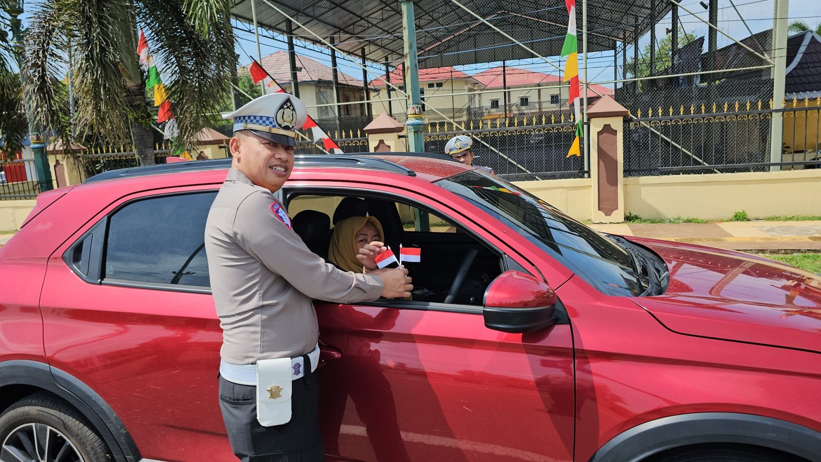 “Pembagian bendera merah putih ini secara gratis sekaligus personel Satlantas Polres Musi Rawas, menyampaikan himbauan untuk para pengendara untuk mentaati peraturan dalam berlalu lintas,” jelas kapolres