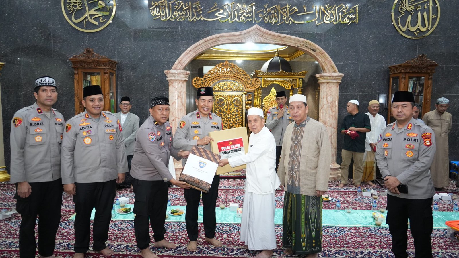 Wakapolda Sumatera Selatan Brigjen Pol Rony Samtana, S.I.K., M.T.C.P. hadir didampingi sejumlah Pejabat Utama Polda Sumsel, di antaranya Dir Lantas Kombes Pol Maesa Soegriwo, S.I.K., S.H., dan Dir Binmas Kombes Pol Hari Purnomo, S.I.K., S.H., M.H., M.Han., serta unsur pemerintah setempat dan pengurus masjid.