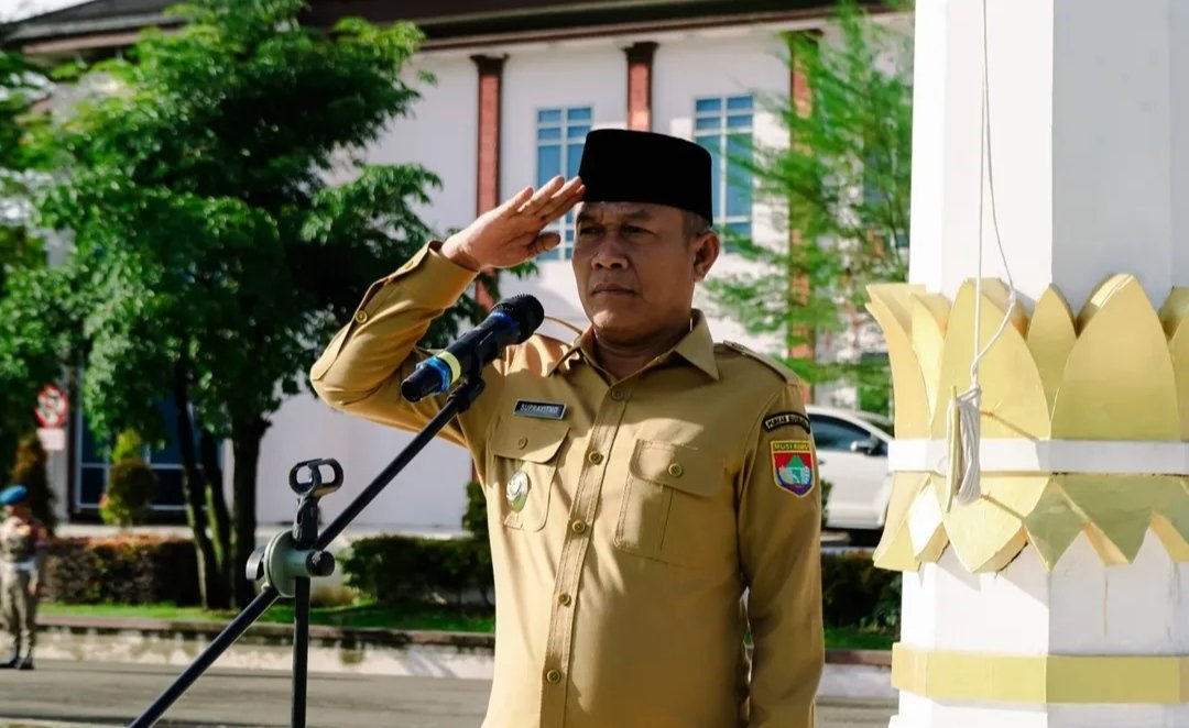 Wakil Bupati Musi Rawas, H Suprayitno @h.suprayitno01 pimpin apel pagi bersama dilingkungan Pemerintah Kabupaten Musi Rawas, di halaman Kantor Bupati Musi Rawas, Senin (4/8/2025).