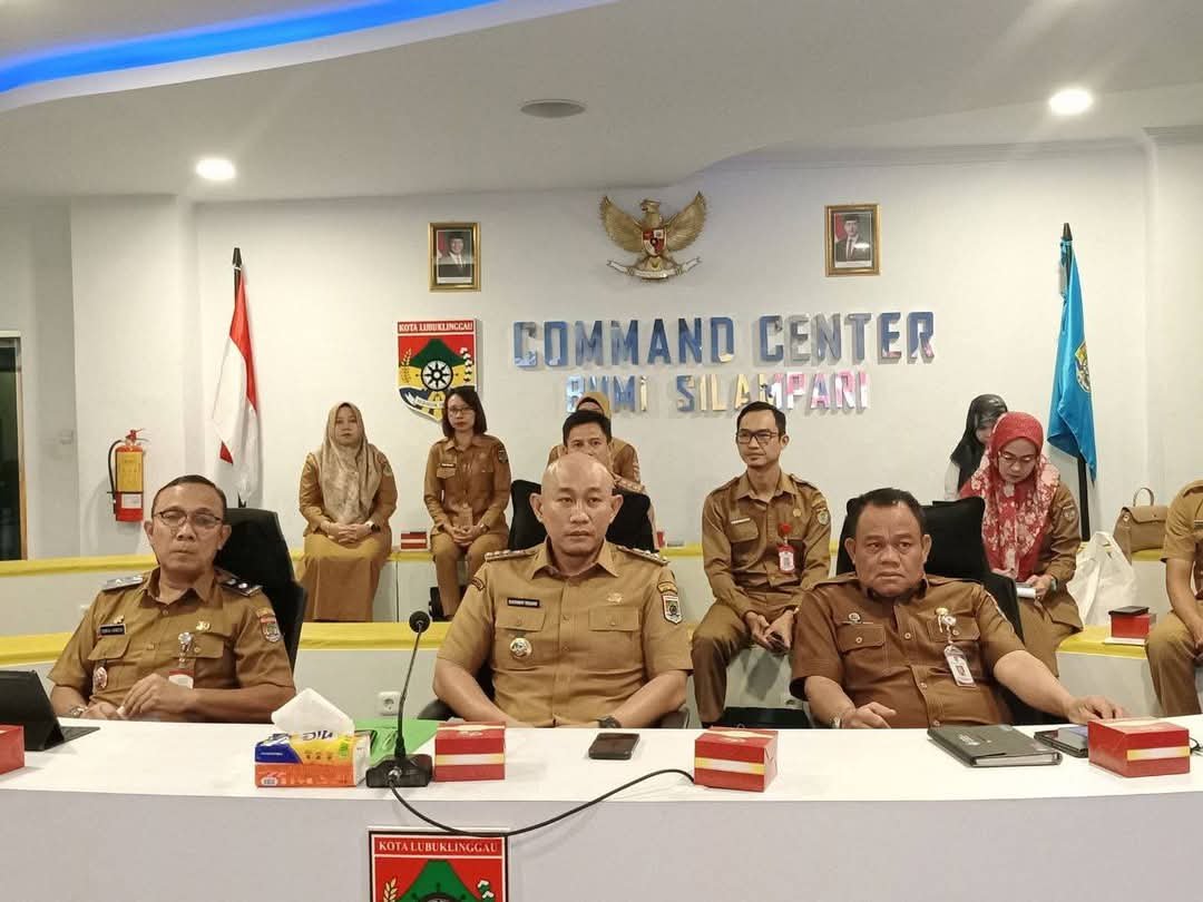 Wali Kota Lubuk Linggau, H Rachmat Hidayat mengikuti rapat koordinasi dengan Kementerian Dalam Negeri (Kemendagri) terkait program Makan Bergizi Gratis (MBG) dan Percepatan Penanganan Tuberkulosis (TB) melalui zoom meeting di Command Center Pemkot Lubuk Linggau, Senin (29/9/2025).